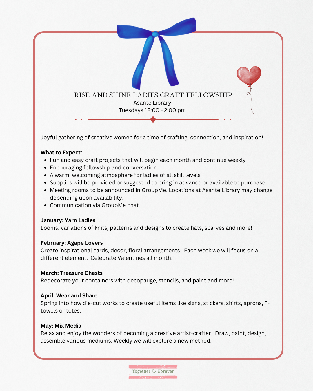 Craft Ladies Fellowship 2026 Agenda